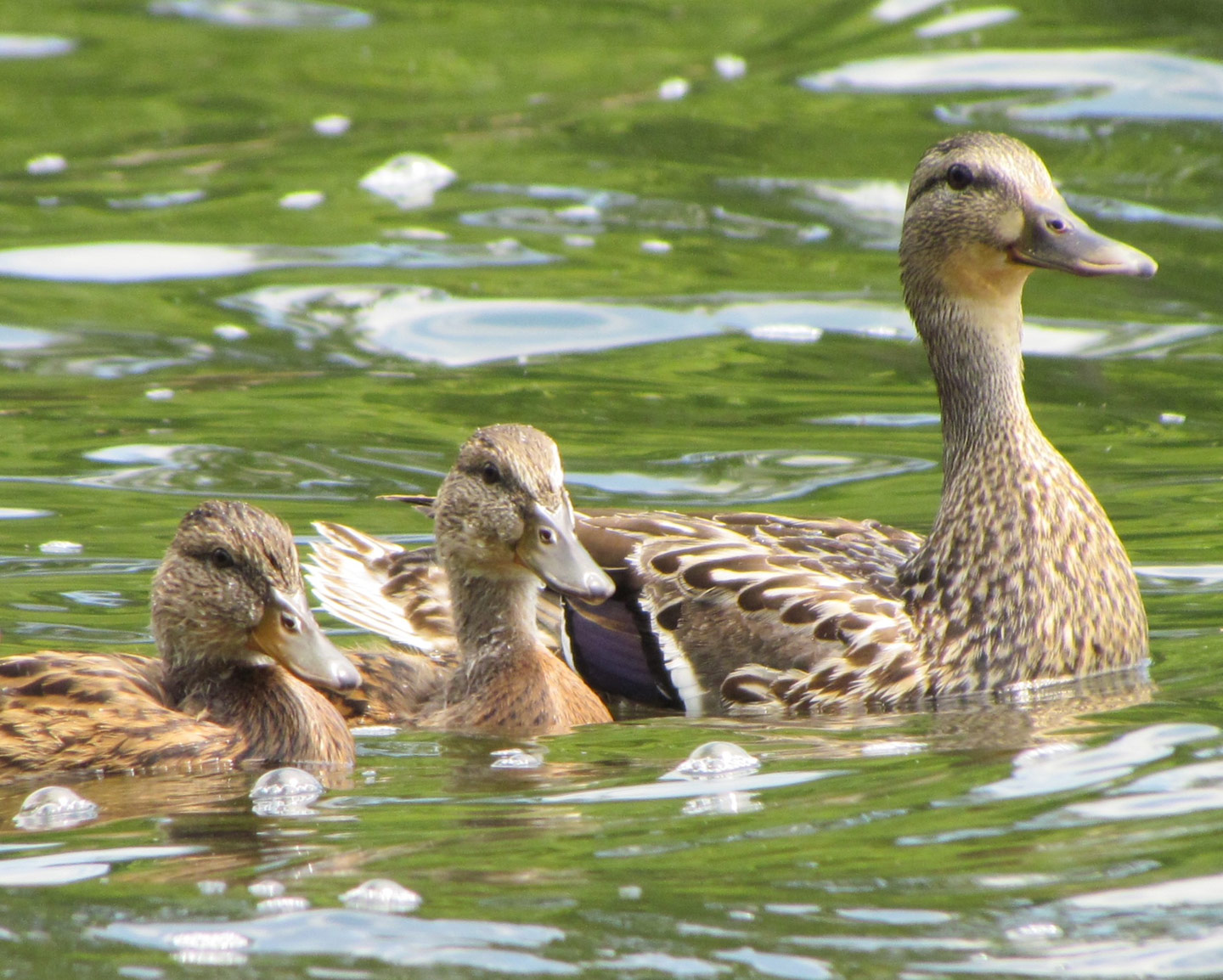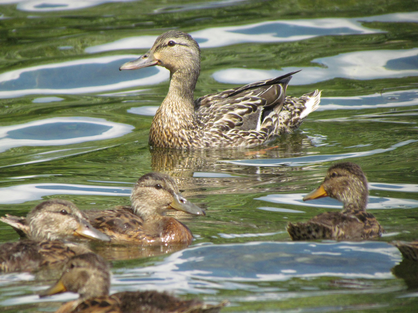 Mama Mallard stays with her ducklings for 45-60 days. Over the course of this time, the youngsters become increasingly more independent and will eventually learn how to fly. We can help ease her maternal burden by picking up dangerous tangles of fishing line and other litter around lakes and ponds and by giving her precious family plenty of space and respect.
