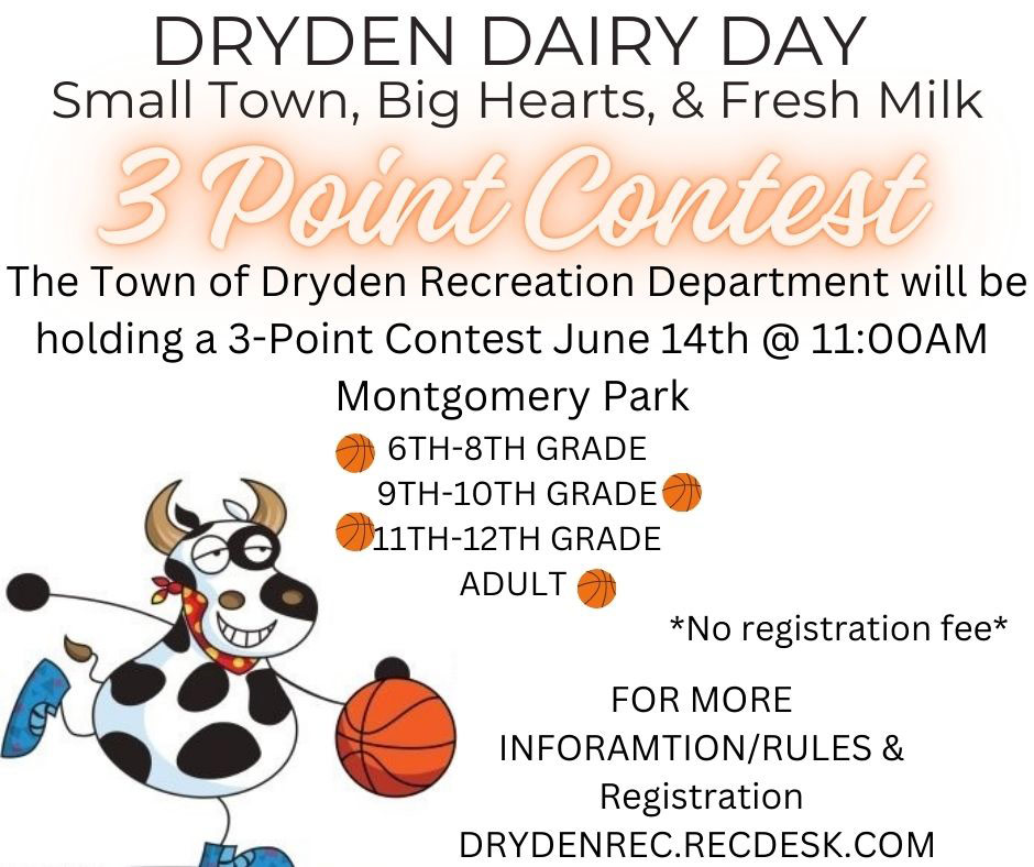 - 11am – 3 Point Contest COURTS Sponsored by Town of Dryden Rec