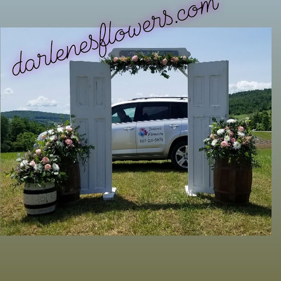 Darlene’s Flowers travels all over upstate New York and Northern PA setting up and delivering floral designs.  We just had a wedding in Corning, NY at The Gathering at Bailey Creek. What a beautiful place.